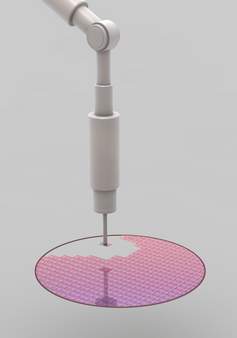 Cairan biru yang terhasil dikenali sebagai ""Photo Resist". "Wafers" akan diputar dengan kelajuan tinggi agar ianya membentuk satu material yang cukup sebati.